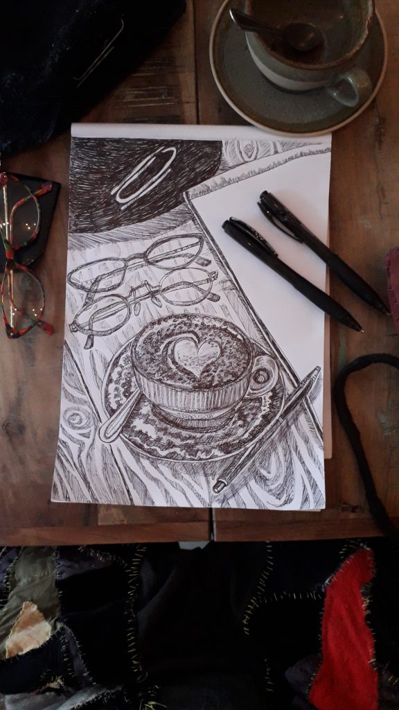 I work on a page of this comic book in public spaces each week. I will let you know where that will be happening soon.