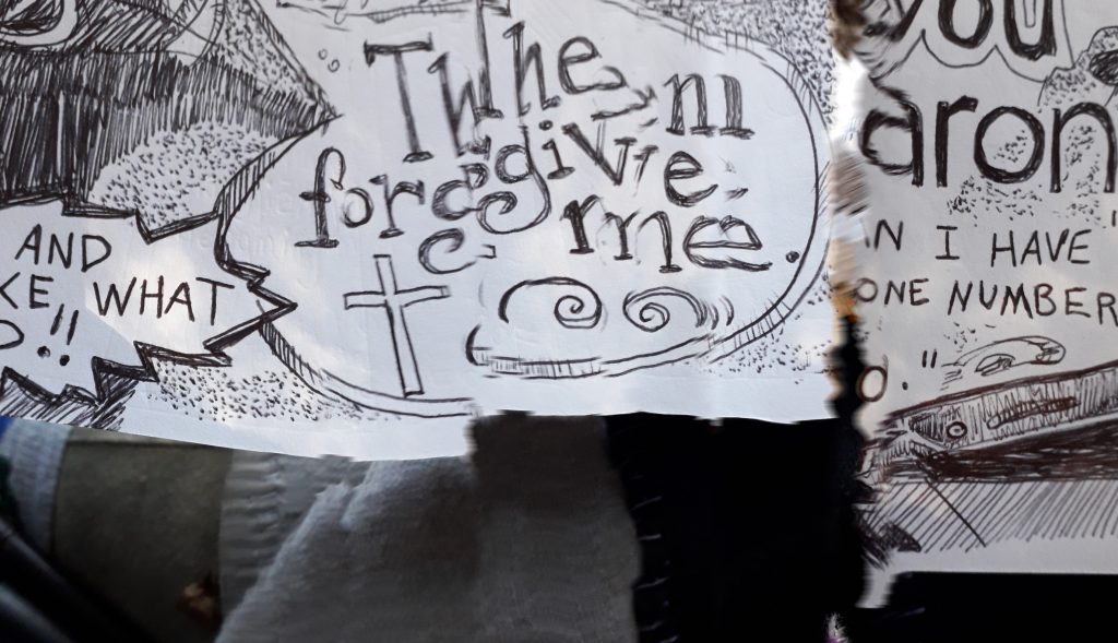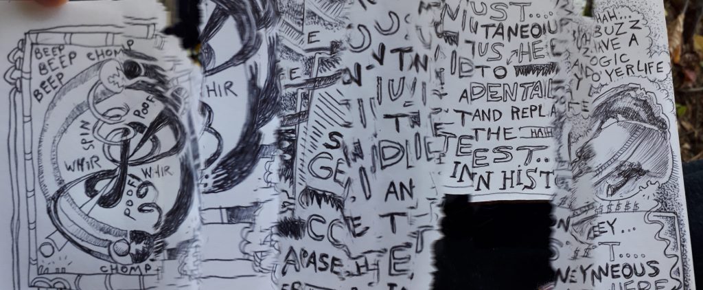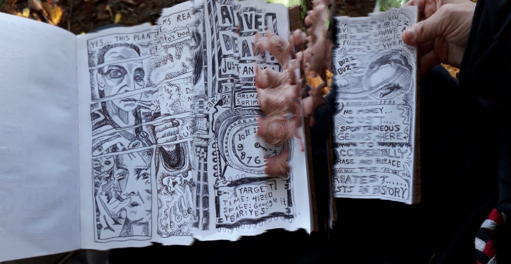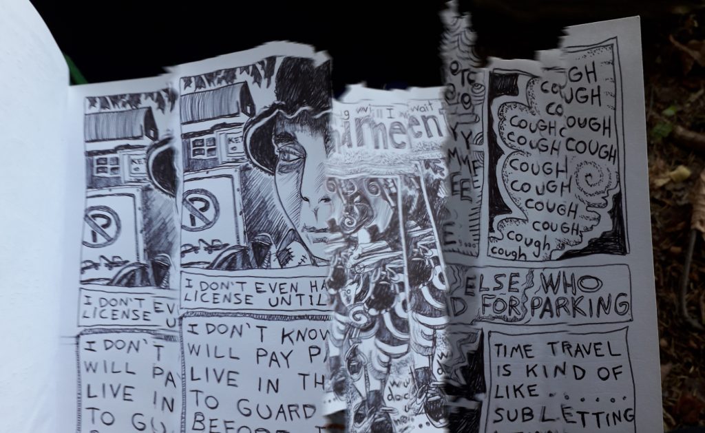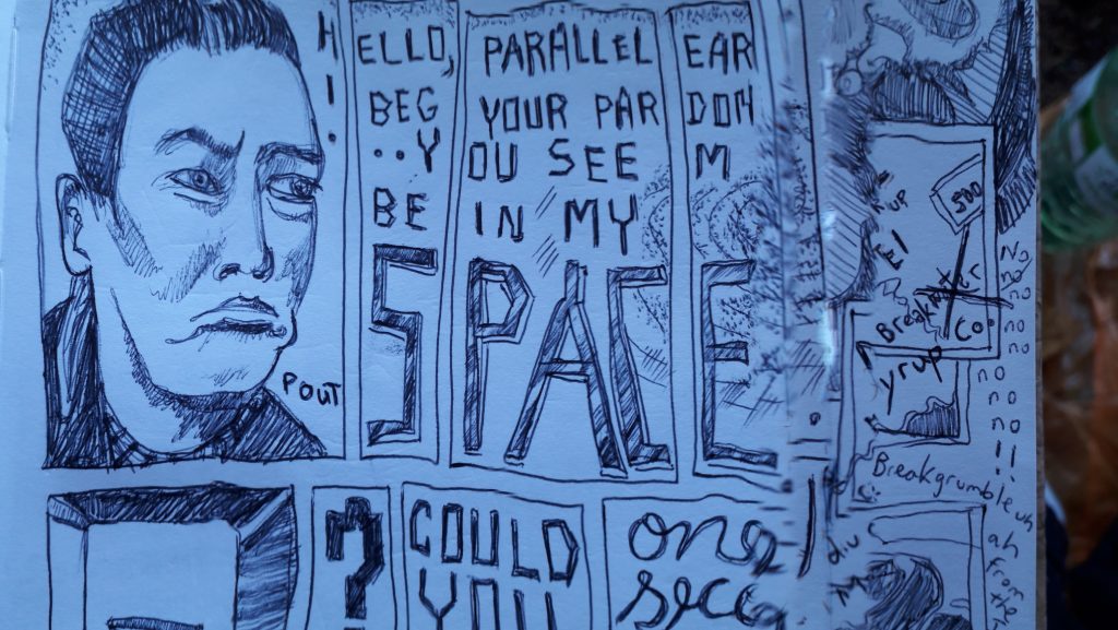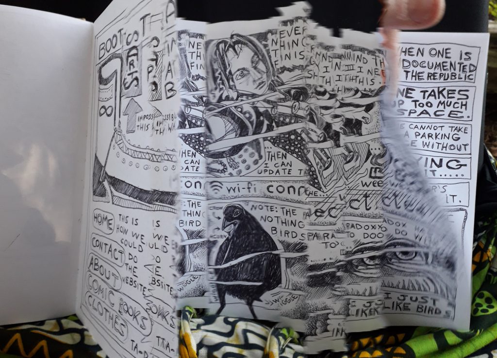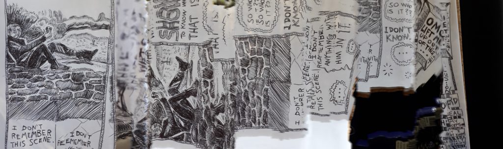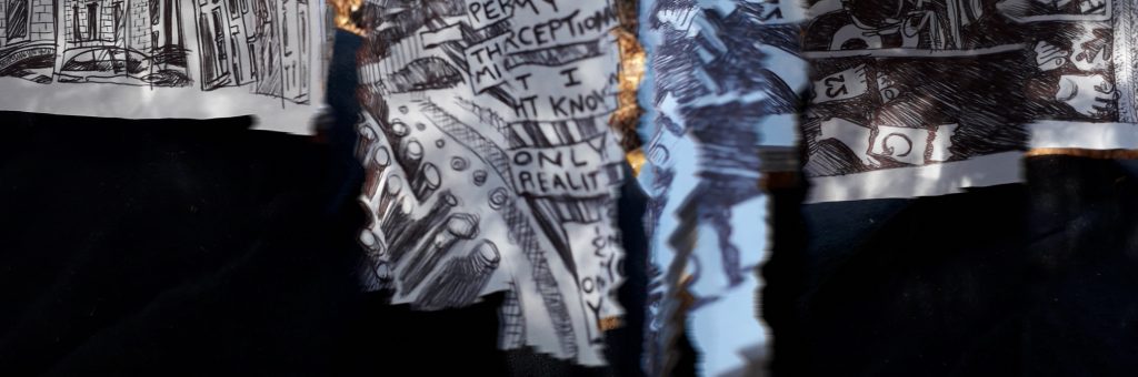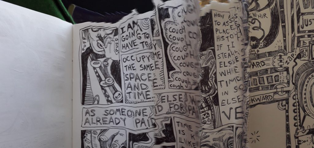 Examples of trick photography using Panorama setting on a smart phone camera. These photos were taken of myself as selfies and of my comic book in Panorama mode to play with the artificial intelligence in the camera gestalting.